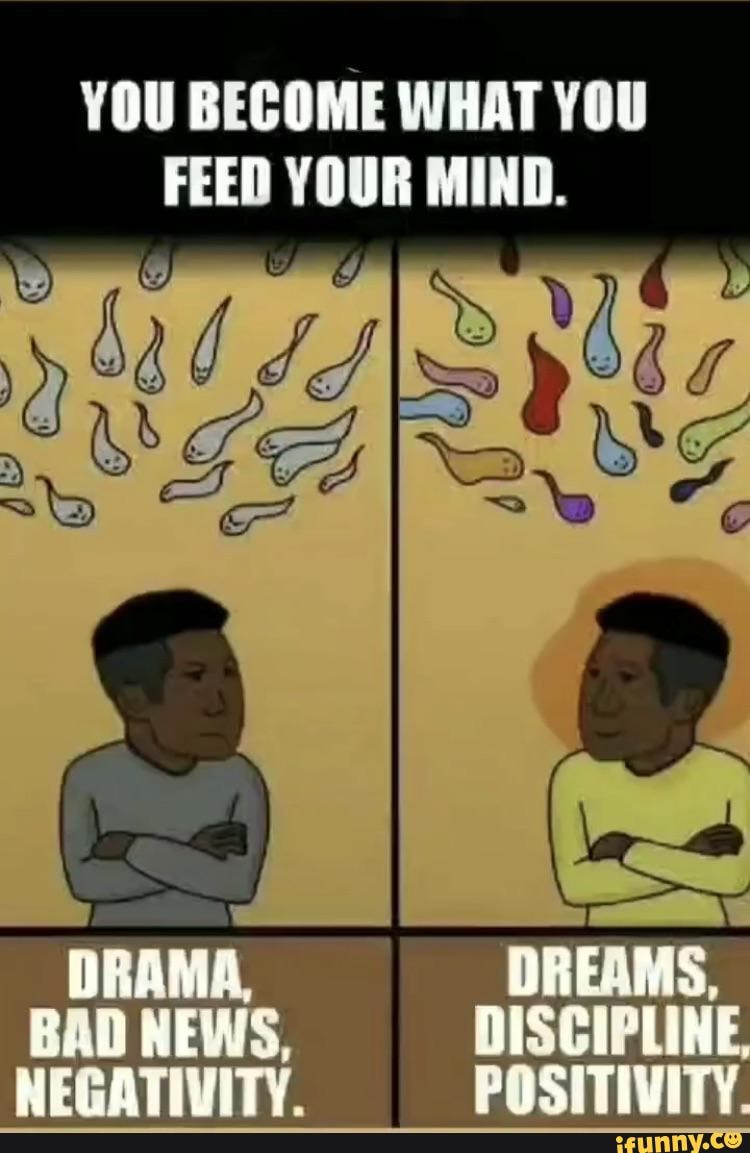 You Become What You Feed Your Mind Drama Dreams Dreams Bad News Discipline Nerativity Positivity
